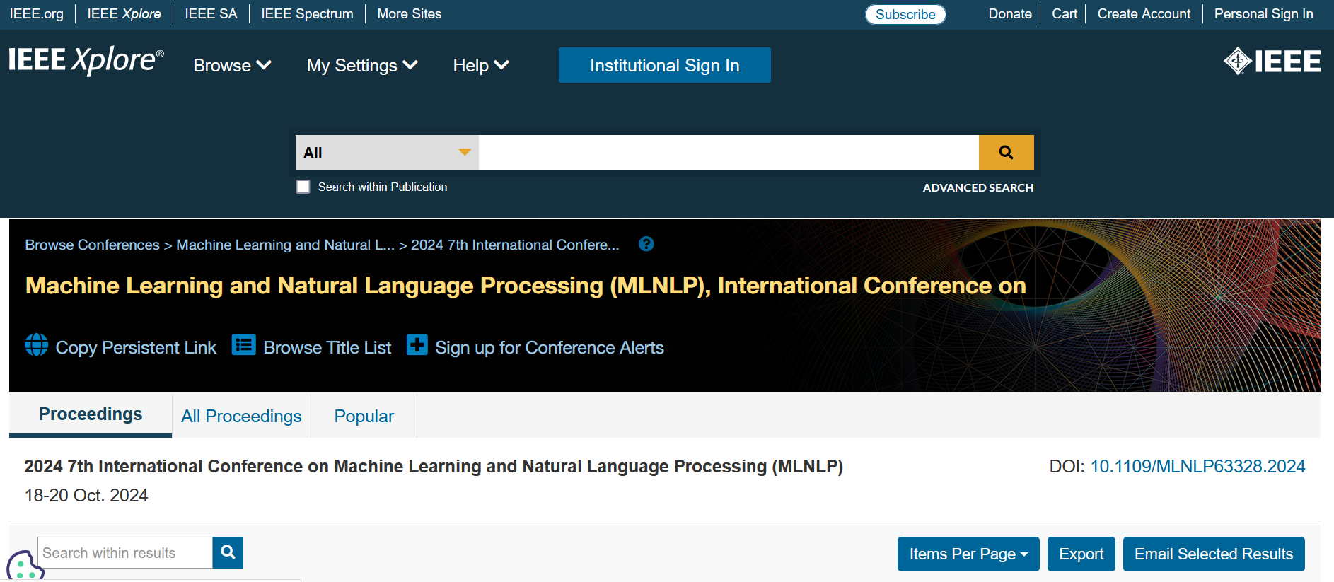 MLNLP 2024 conference proceedings have been published by IEEE (ISBN: 979-8-3503-5497-3) (proceeding) and indexed by EI Compendex and Scopus sucessfully.